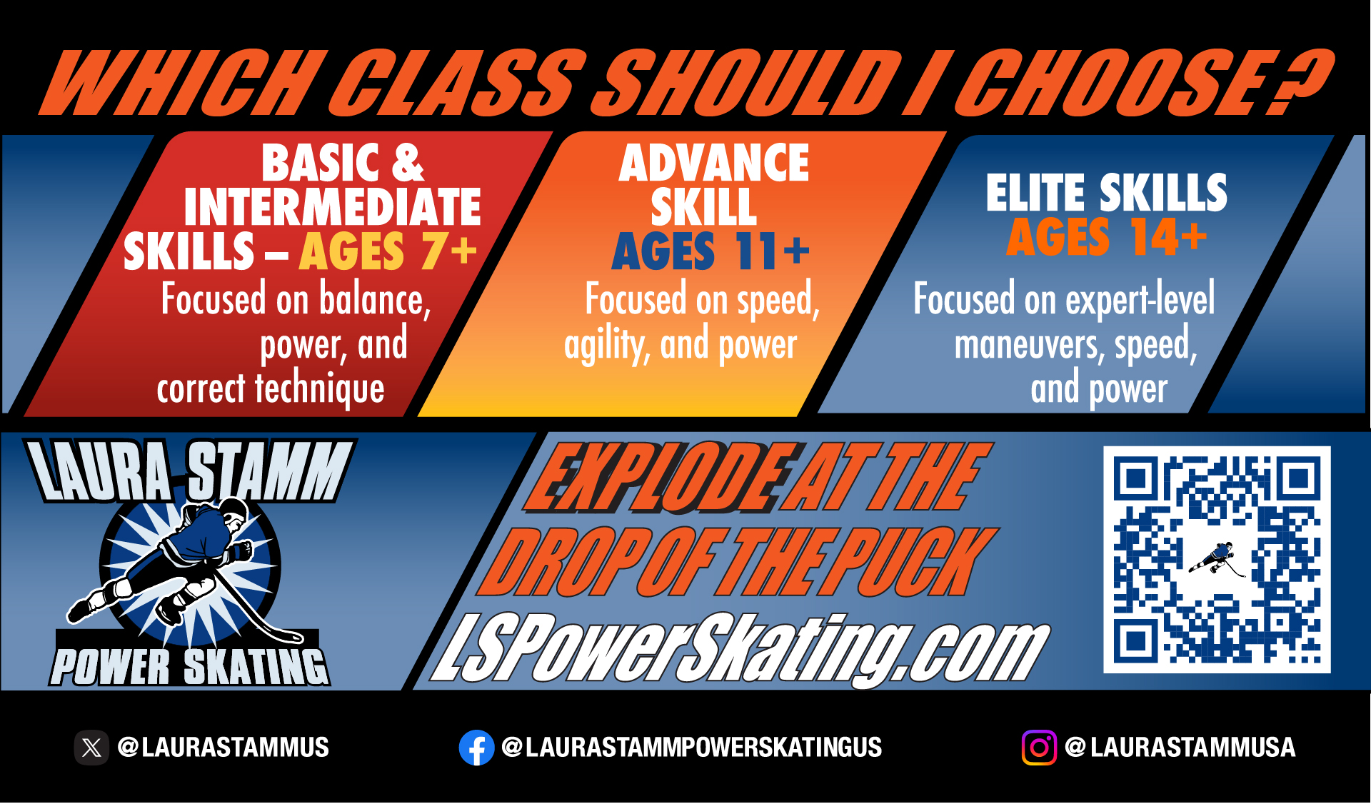 Recommended for skaters who want to develop more advanced skating skills, have previous experience with the Laura Stamm Power Skating system, or are playing at least at a travel hockey or intermediate adult league level, in line with the recommendations below.